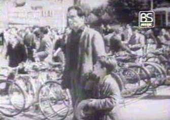 近所の人も協力してくれて盗んだ犯人を探して歩くがなかなかうまくいかない。父親について一緒に探し歩く少年の表情がなんともいえず可憐でいじらしい。犯人らしき男を探し当てて問い詰めるのだが、その近所の住民に妨害されて結局は自転車を取り戻すことが出来ないのである。