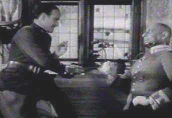 膝まで没する雪の深い山の斜面を二人の男達が転がるようにして駆け下りて行く。苦労に苦労を重ねてやっと自由になることの出来る、スイスの国境を超えたところである。山の頂上では国境を監視していた数人のドイツ兵がそれを見送って「運のいい奴らだ」とつぶやいている。この少し前に国境を超えようとしていた二人を巡邏中にたまたま発見し、2、3人の兵が発砲するが、指揮官らしき兵が「彼らは既にスイス領内にいるのだ」と言ってそれを止めさせる。この一言の中に当時の人々の戦争に対する考え方、あるいは西欧社会に共通した騎士道的概念がはしなくも表されているように思われる。 第一次世界大戦に題材をとったこの作品は主に3人のフランス軍捕虜将校とドイツの捕虜収容所所長を軸にして展開する物語である。貴族出身のボアルデュー大尉とパリの職工であったマレシャル中尉はある日偵察機に乗って敵情を偵察するように命令されて出撃するが、撃墜されてドイツ軍の捕虜収容所に送られる。その収容所で一緒になったのが裕福なユダヤ人の息子のロザンタールという設定だ。最初の収容所では缶詰の缶を使って地下道を掘り脱走を計画する。日本軍では戦前、捕虜になることを最大の恥辱とする教育がされていたが西欧人にとってはそれは恥でも何でもなく、収容所で脱走計画を練ってそれを実行し敵陣の後方を撹乱するのが一つの義務になっているようである。捕虜収容所からの脱走を題材にした映画はこの他にも多く見ることが出来る。 戦争が個人の運命に与える悲惨さを静かに訴えているシーンである。 途中、一寸したことで言い争いをし、「ユダヤ人のくせに」と言って悪態をつくところがあるが、この辺のところが日本人たる私には見ていて全く理解する事の出来ない場面である。更に言えば、西欧の騎士道と言われる精神は、日本で言えば「武士道」に相当するということになるのかもしれないが、感覚的には彼ら西欧人社会だけの間に通用する規範なのではないかという風にも思われる。会田雄二の「アーロン収容所」などを読むと、余計にそのようなことが気になって仕方がない。あるいは第一次大戦から第二次大戦に到るニ十数年の間に、近代戦争兵器の進歩と共に人間そのものの価値観、倫理観などもそれにつれてすっかり変わってしまったのであろうか。(大いなる幻影)(00/08/22) |
