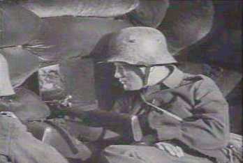 第一次世界大戦の最中、今日は珍しくフランス軍からの砲撃がなく、ドイツ軍の塹壕の中の兵士達は壕内に溜まった雨水を汲み出したりしている長閑な日である。しかしそのなかで敵の襲撃に備えて銃眼に銃を構える任務についていていた若い兵士ポールは、構えた銃の先に一羽の蝶がいるのを目にした。それは敵味方の銃砲弾で土肌のみになってしまった殺風景な風景には似合わない可憐な姿であった。シーズンが過ぎてしまった秋のある日、軽やかに舞うことが出来ないのか空き缶の蓋の上にじっとたたずんでいる蝶の姿を見て、戦友の死に立ち会ったばかりの青年は生命の愛おしさを感じずにはおれなかったのであろう。思わず微笑をもらしたポールはその蝶を捕まえようとして塹壕の土嚢の上に身を乗り出そうとしている。 しかしフランス軍の塹壕にいた兵士の一人が、身を乗り出したポールを見て銃を構え照準を定める。手招きしながらそっと蝶に近づいて行こうとしている手は、突然の一発の銃声と共に後ろにはじかれ、そして力なく地上に横たわってしまう。夢も希望もあったであろう一人の若い青年の命が戦争という環境の中でこうしていとも簡単に消え去ってしまった。 戦争映画のシーンの中で多くの命が失われて行くのを何度も見せられている。戦争のむごたらしさ、無意味さを無論感じさせられるが、このシーンは一人の人間の命が何の理由も意味もなしに突然失われて行く死として描かれているために、かえって生々しい現実感を伴って我々に怒りと、戦争の不条理さを訴えかけているのであると思う。 映画の前半で中学の教師が生徒達に戦争参加を呼びかけるシーン。我々の少年時代にも同じようなことがあった。時代の風潮に軽率に乗せられて正義の士よろしく、生徒達を煽動する教師像は裏を返せばその反動としての戦後の教師像ではないだろうか。教師ばかりでなくジャーナリズムを初め、世の中一般が時代の熱気にあおられて冷静な判断を失い、付和雷同して我こそはと正義の使者たらんとして喚いているのは何時の時代にも見られる浅ましい人間像なのかと思わず失望させられてしまうのである。(西部戦線異常なし)(00/10/15) |