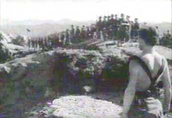 次から次へと名前が呼び上げられ、その度にリュカの「戦死」と答える声が周囲の山に反響して消えて行く。点呼終了後、部隊全員で「捧げ銃」をした後、戦死者が並べられている傍を、軍旗を先頭にラッパを鳴らしながら行進して去って行く。24名の先遣隊員達の生と死を分けた運命の非情さがひしひしと胸に迫ってくるシーンである。