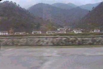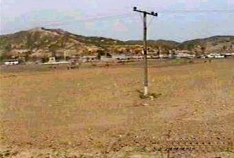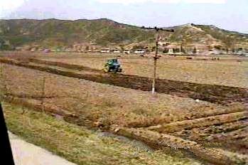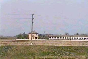 | 沿線を見ていて真っ先に感ずるのは、電力用の送電鉄塔が全くないことである。僅かに木製の電柱が申し訳程度に立っていた。これは電力は各地夫々で調達するという金日成の賢明なる指導のためであるとどこかの書物で読んだ記憶がある。 右端の写真は平壌近くで見たもので若干規模が大きいが、それでも木柱である。 |