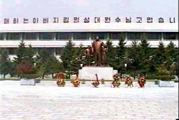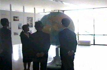 | 金剛山を見学して元山を通過するときに、青少年訓練センターに連れて行かれた。当初は金日成の保養所か何かを建てる予定であったが、金日成の暖かい配慮で、各国からの青少年を集めて訓練する訓練センターを作ることになったという説明であった。 正面ロビーには、金正日が子供の時に使ったという直径2メートルはあろうと思われる大きな地球儀が展示してあった。 |