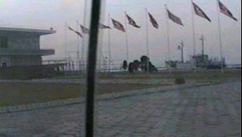 | 宿舎のホテルに入る前に、車は元山港近辺を走った。アメリカのスパイ船として北朝鮮に拿捕された「プエブロ号」が繋留されていたが、水兵服を着た軍人姿があったので、ちゃっかりと現用使用しているのに思わず苦笑させられた。 夕方の公園風景。 |