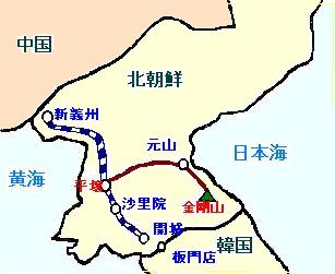 | 1995年4月25日、平壌、元山間(172Km)、元山、金剛山間(114Km)を夫々自動車で往復した。 |