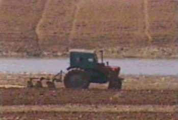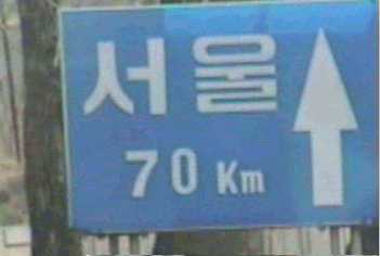 途中で見かけた農作業中のトラクター 「ソウル」へ70Kmの看板。 38度線が丁度このあたりにあたるのか。かつてどの辺の山を、深夜歩いて超えたのだろうか。 |
