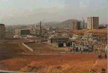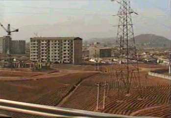 開城市内の風景。殺伐とした印象を受けてしまうのだが、気のせいだろうか。(「南大門」は1300年頃の建築という説明である) 場所がどの辺なのか知る由もないが、テント村で約一週間を過ごした。10月下旬だったが、それでもマットが敷かれたテントの中の生活は快適とは言えないまでも有難かった。 |
