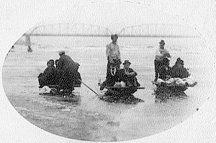 昭和10年(1935)当時の鴨緑江鉄橋周辺の写真