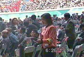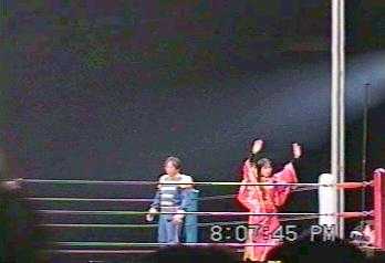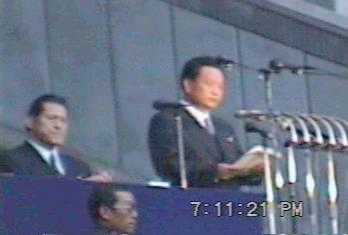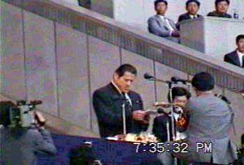 | プロレスを平壌でやるということは新聞等で知っていたが、ここでアントニオ・猪木(当時参議院議員)が出て来るとは思わなかった。日本語で祝辞の挨拶をするのを聞いていて、観衆の朝鮮人はどのように感じるのかと気になった。 |