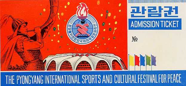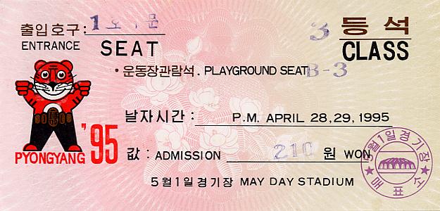 | 1995年の一連の北朝鮮旅行は、平壌で「平和のためのピョンヤン国際スポーツ及び文化祭典」というイベントに合わせて企画されたツアーであった。期間中はこのイベント見学のために世界各国から1万人程度の外国人の入国があったようである。日本からの観光客は2,000人ぐらいだと聞いた。 |