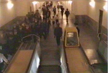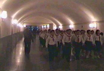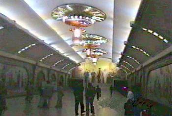 | 1995年4月29日、平壌市の地下鉄に乗車。 |