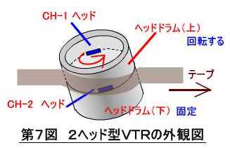 | 昭和35年(1960年)には日本ビクターが2ヘッド方式のVTRを開発した。後に世界の標準になるVHSの開発を始めたのは約10年後の昭和46年(1971年)である。 |
