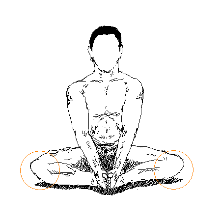 足裏を合わせて、踵をなるべく股間(鼠径部)に近づけます。