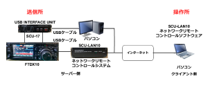 <導入して分かった事2> 1.リモートで、CWモードを運用しようとすると受信は出来ますが、送信は出来ないようです。 2.FTDX10の電源ONは、SCU-LAN10経由でないと出来ません。RS-232Cポートでは電源ONは出来ません。但し、電源OFFは出来ます。 3.FTDX10本体のUSBポートをSCU-LAN10が使用するため、FT8は、SCU-17を経由しないと出来ないようです。 |