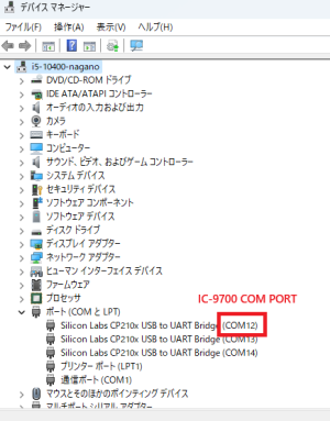 | デバイスマネージャーのポート(COMとLPT)でお使いの無線機のポート番号が確認できます。このポート番号をソースコードに反映するとお使いの環境で動作可能となります。 |