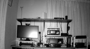 | 室内カメラで状態の監視をしています。通常は、ルーターとIP9258の電源のみ入っています。 IP9258を操作することで無線機の電源やパソコンを起動することが出来ます。 |