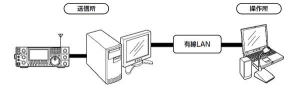 IC-7610/IC-9700 宅内リモート:有線LANを利用/送信所はサーバー機能が搭載されている無線機 操作所側パーソナルコンピューターにRS-BA1(IPリモートコントロールソフトウェア)をインストールし運用する。 |