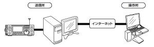 IC-7610/IC-9700/IC-705 別宅リモート:インターネットを利用/送信所はサーバー機能が搭載されている無線機 操作所側パーソナルコンピューターにRS-BA1(IPリモートコントロールソフトウェア)をインストールし運用する。 |