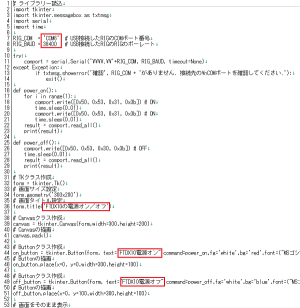 | ダウンロードした、FTDX10_power.zipを解凍すると、FTDX10_power.pywが展開されます。展開された、FTDX10_power.pywを起動すると、下記画面が表示されます。 ・「FTDX10電源オン」・・・クリックすると、FTDX10の電源がオンします。 ・「FTDX10電源オフ」・・・クリックすると、FTDX10の電源がオフします。 |