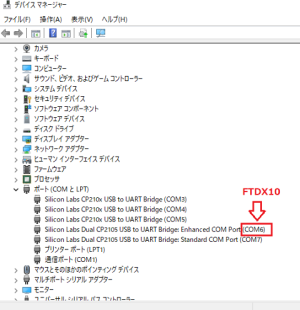 デバイスマネージャーのポート(COMとLPT)でお使いの無線機のポート番号が確認できます。このポート番号をソースコードに反映するとお使いの環境で動作可能となります。 ※FTDX10本体のUSBポートに接続しないと起動しません。 |