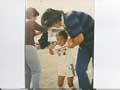 小学校に入学する前の旗拾いです.泣き虫なのは昔からです. |
