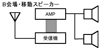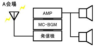 会場が広く,1点からの出力では会場全体をカバーできない場合