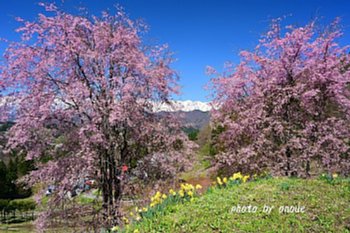 桜と残雪の北アルプス 小川村