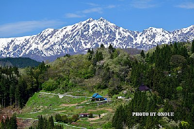 小川村より残雪の鹿島槍ヶ岳を望む