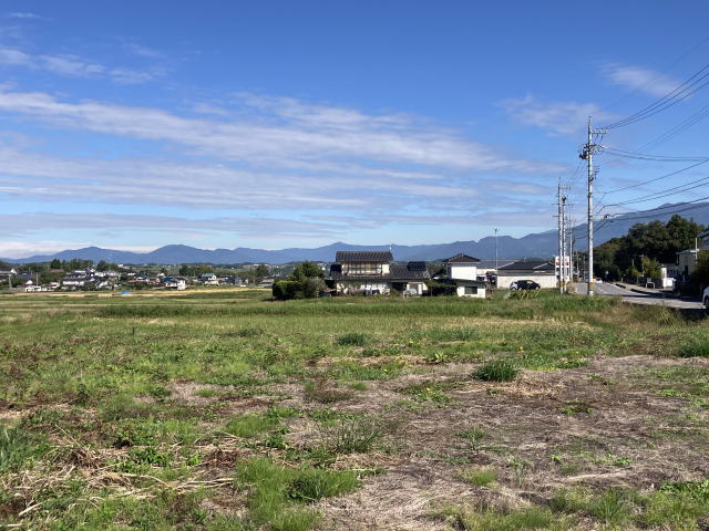 ![]() 南より。 物件と北の景色。 北および西側の田んぼとは段差がある。 |